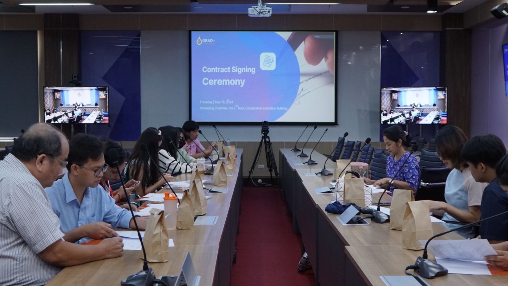 The College of Graduate Studies (CGS) at Walailak University (WU) organized a Contract Signing Ceremony for the grantees of the graduate studies research fund on Tuesday, May 16, 2024, from 1:00 PM to 3:30 PM. The event took place at the Khaoluang Meeting Room on the 2nd floor of the Cooperative Education Building at Walailak University. In this first round, fifteen grantees were selected to receive the research fund.