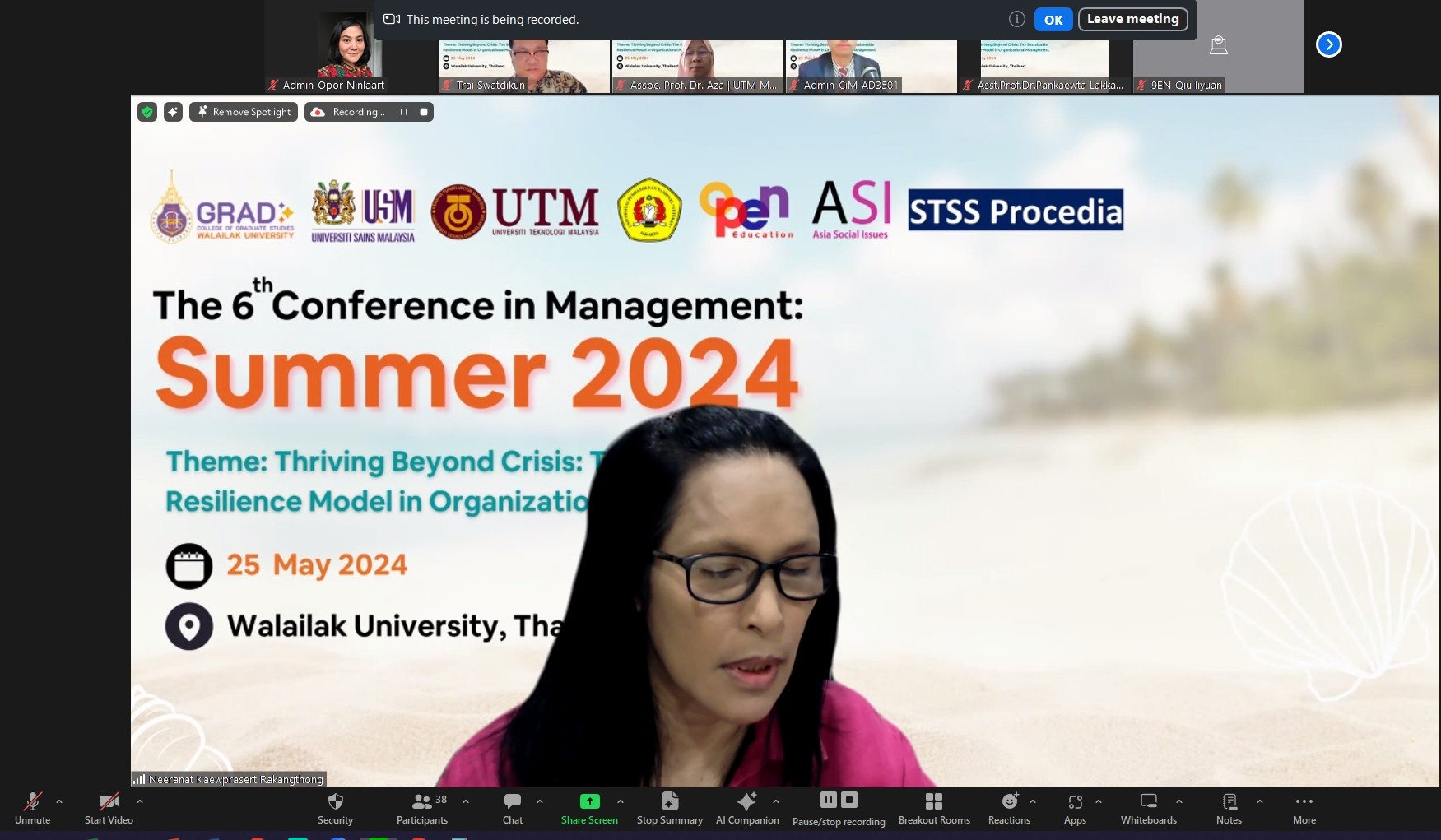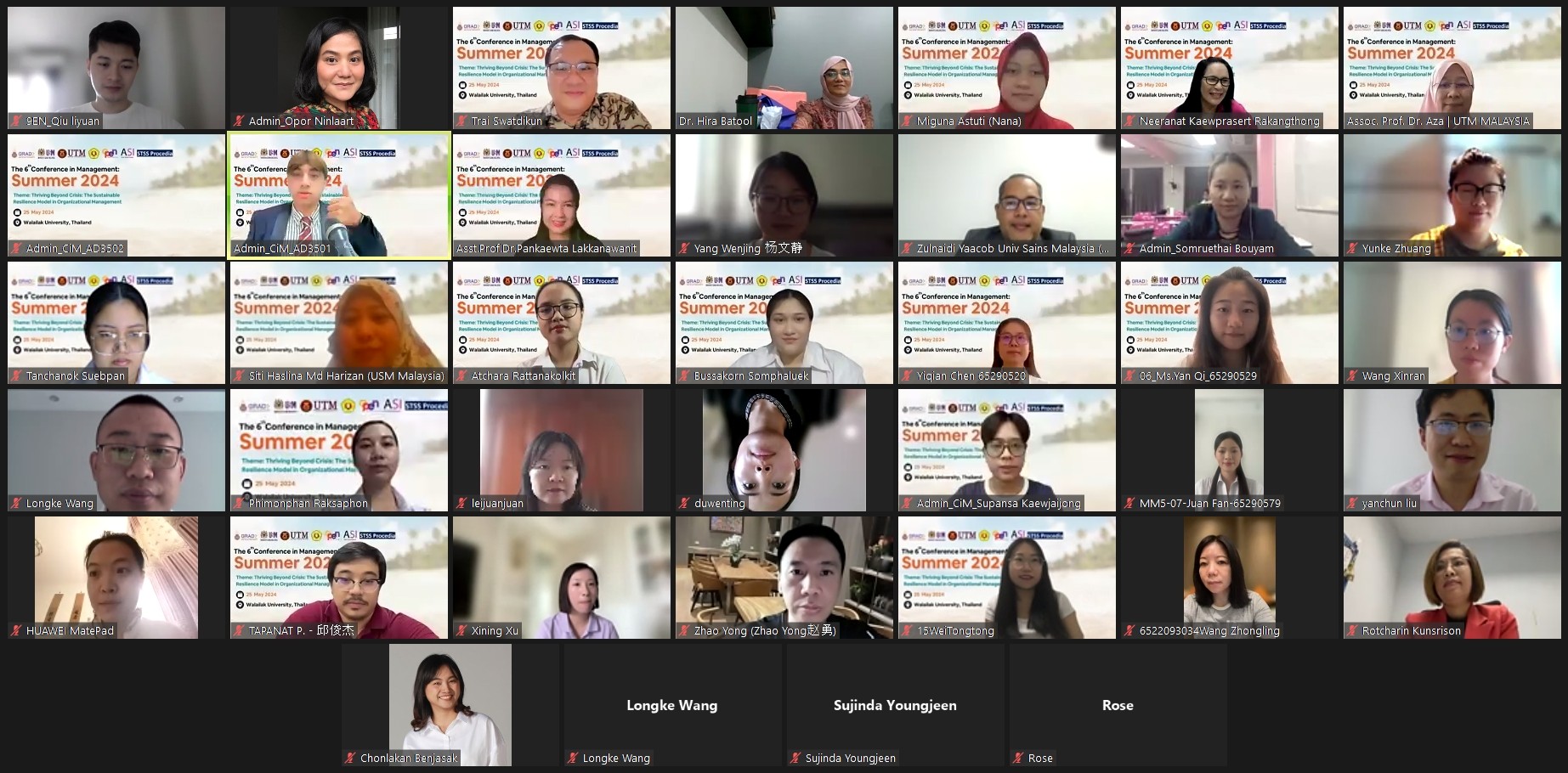 College of Graduate Studies, Walailak University, in collaboration with: 1) Universiti Sians Malaysia, 2) Universiti Teknologi Malaysia, 3) Universitas Pembangunan Nasional Veteran Jakata, 4) Open Edutainment, organized “The 6th Conference in Management: Summer 2024” on May 25th, 2024, at Walailak University, Nakhon Si Thammarat, Thailand. This conference served as a platform for academicians, researchers, and postgraduate students around the world to share their research findings, which led to building academic cooperation networks, developing further research, and developing research into innovation to encourage research development that is more stable, prosperous, and sustainable and truly meets the needs of society.