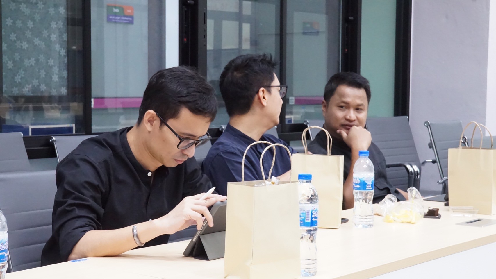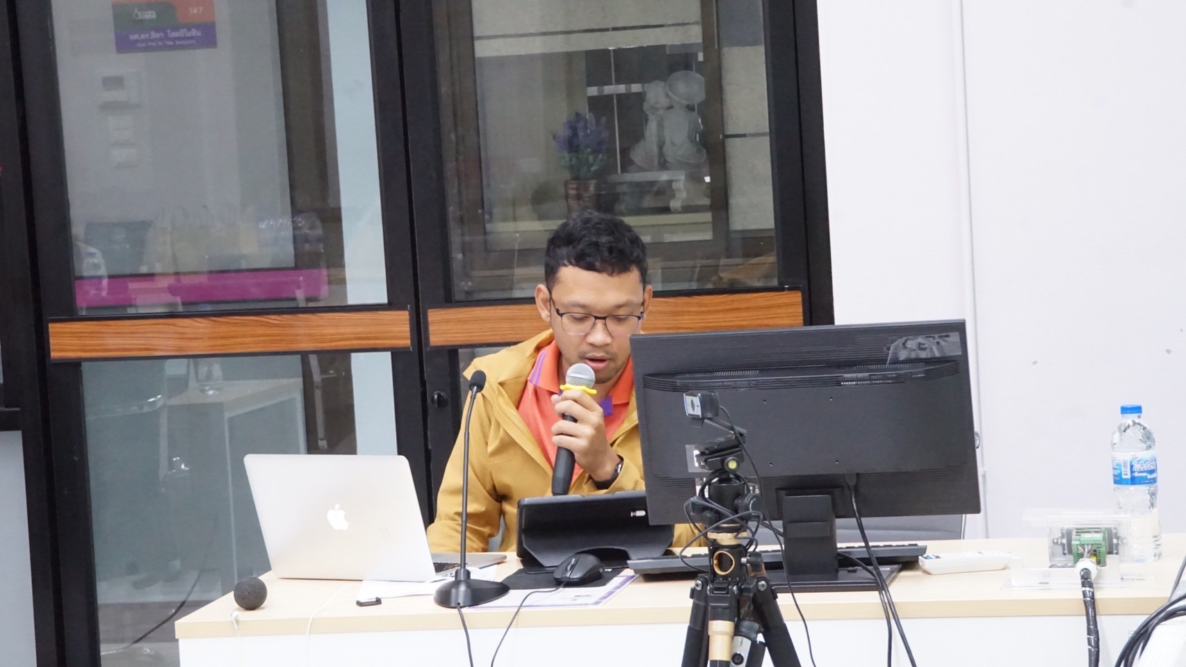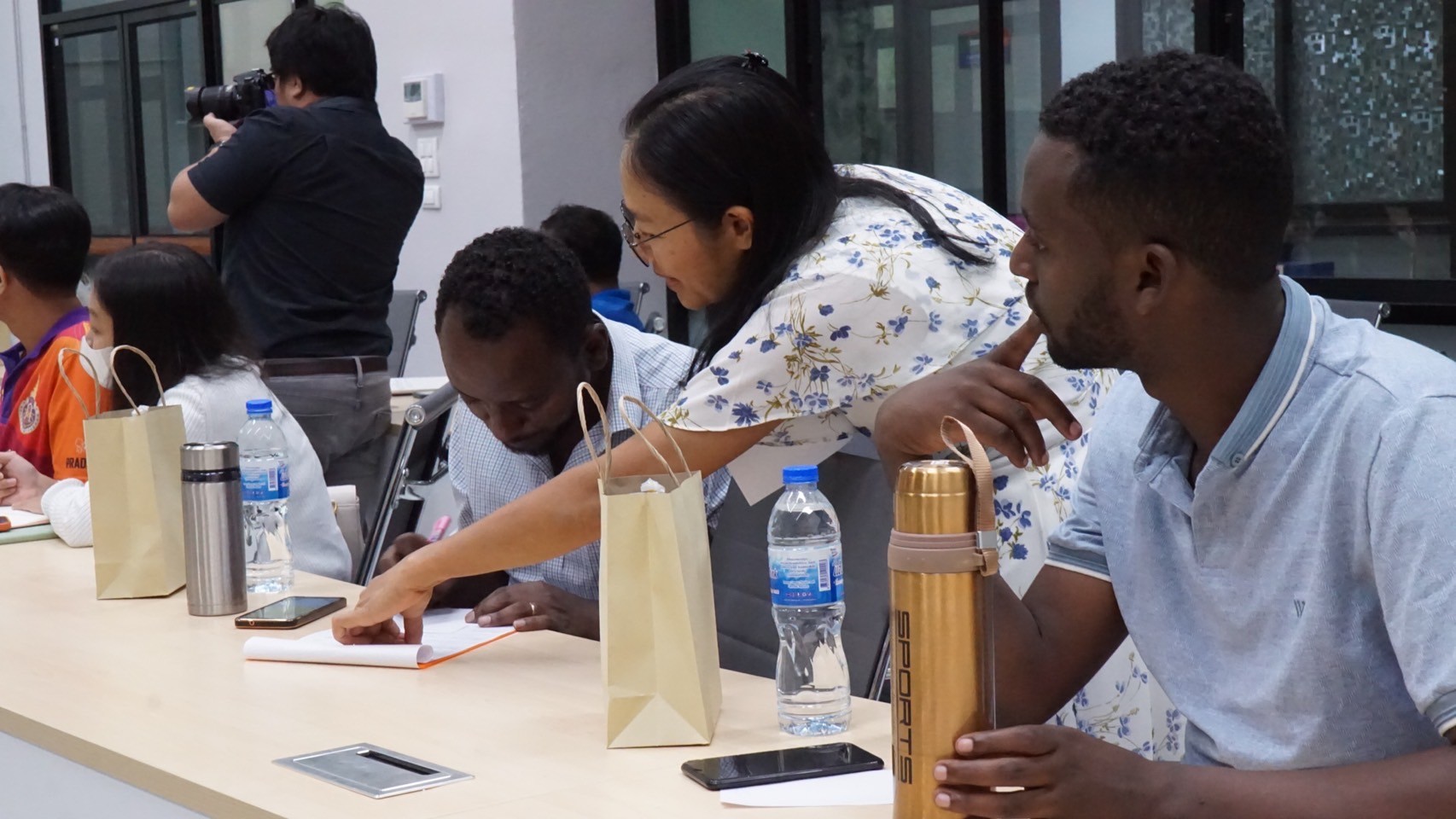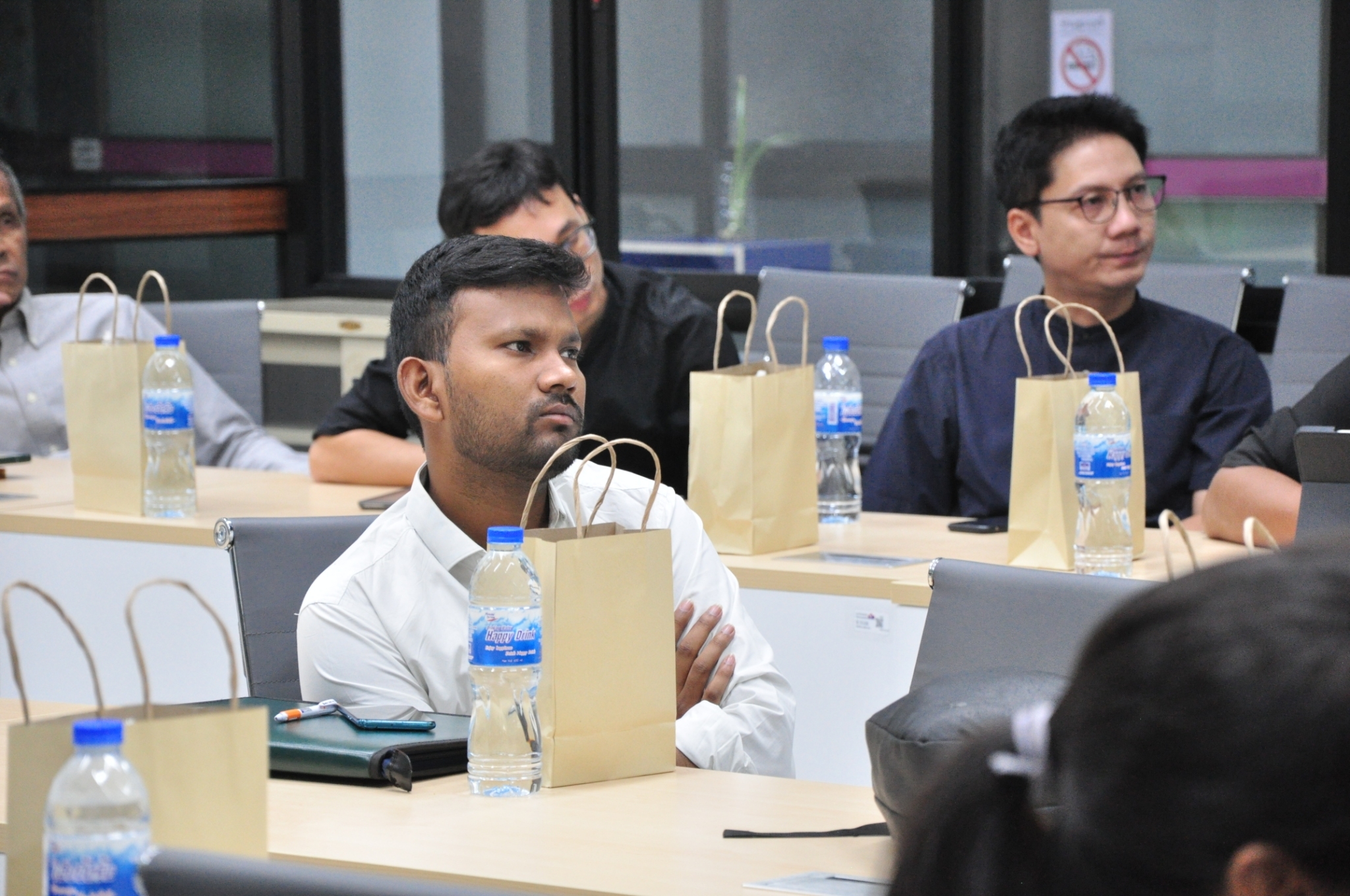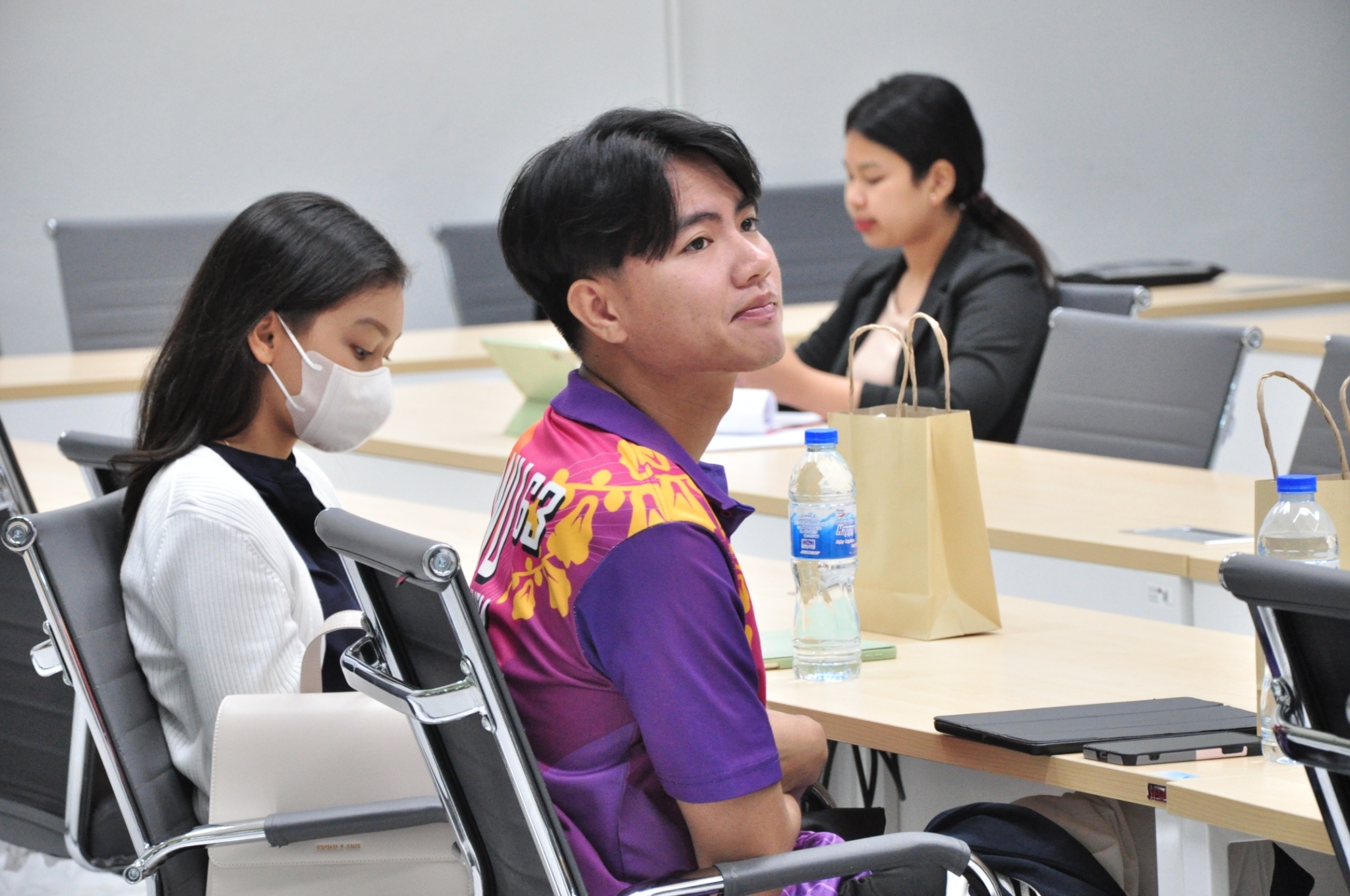 Key support units also participated in the orientation to provide essential information to the students. The Center for Educational Services (CES) introduced the registration system, represented by Miss Thanyalak Pansimai (CES Officer) and translated to English by Miss Supansa Kaewjaijong (CGS Academic Staff). Miss Aparn Chaisuwan and Miss Kittiporn Sriphet from the Center for Library Resources and Educational Media (CLM) presented library resources, databases, and how to access additional resources. Mr. Wisit Reungprom from the Center for Digital Technology (CDT) introduced digital services such as network services and email.