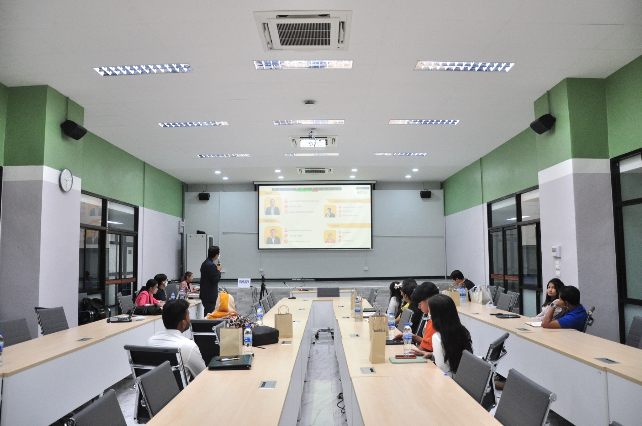 Dr. Somruethai Bouyam, a CGS Officer, then introduced the roles and responsibilities of CGS, highlighting the staff members students will need to contact for various academic processes and guidance on creating study plans.