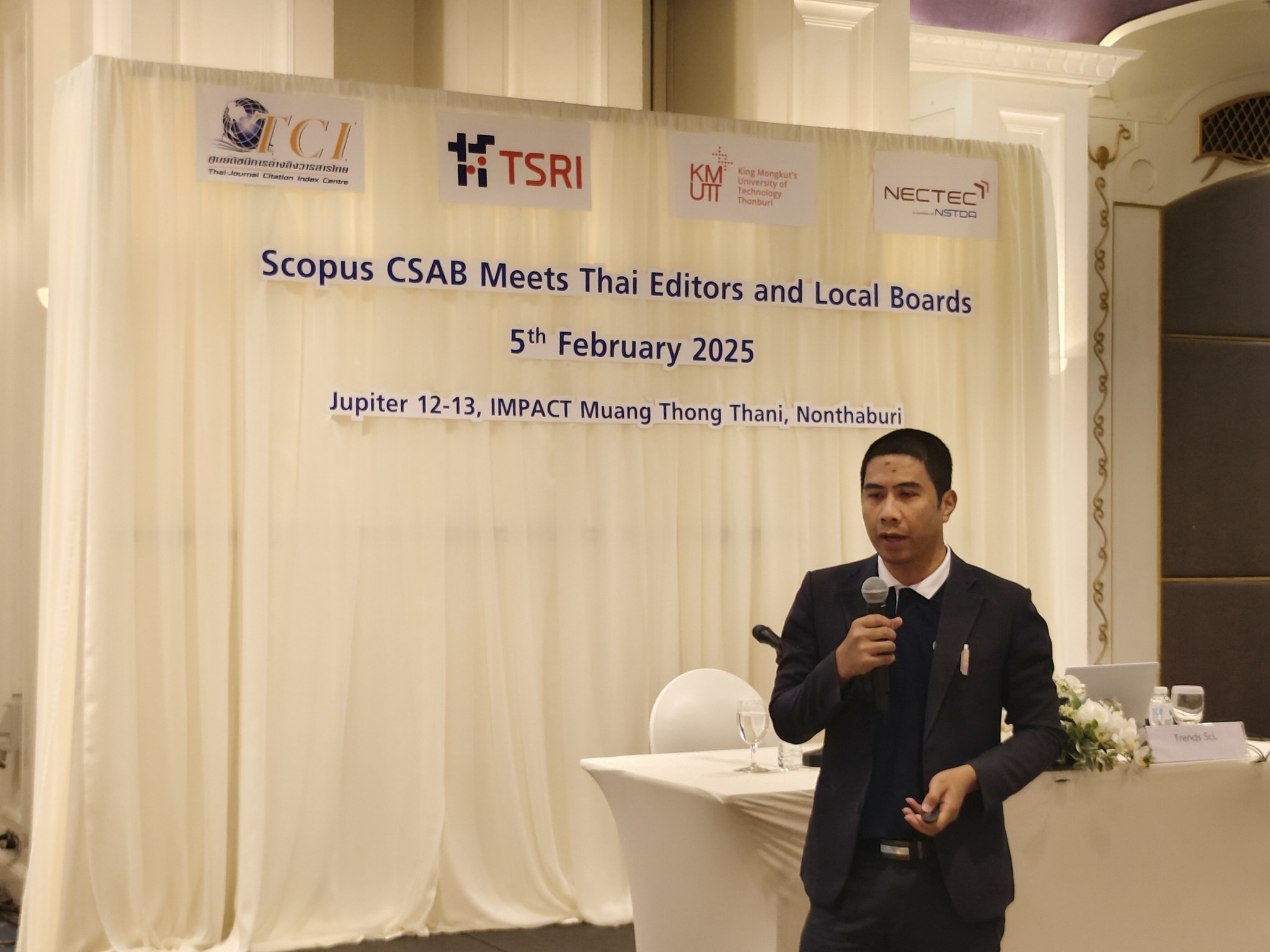 On Wednesday, February 5, 2025, Trends in Sciences attended in the Scopus CSAB Meets Thai Editors and Local Boards. The event took place at the Jupiter 12 – 13, Impact Muang Thong Thani, Nonthaburi, Thailand. This event aims to enhance knowledge and understanding among journal editors and editorial boards on improving the quality of Scopus-indexed journals.