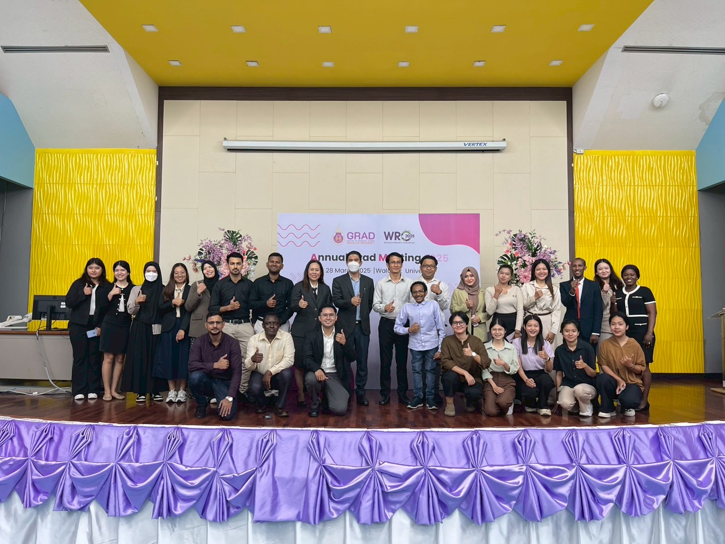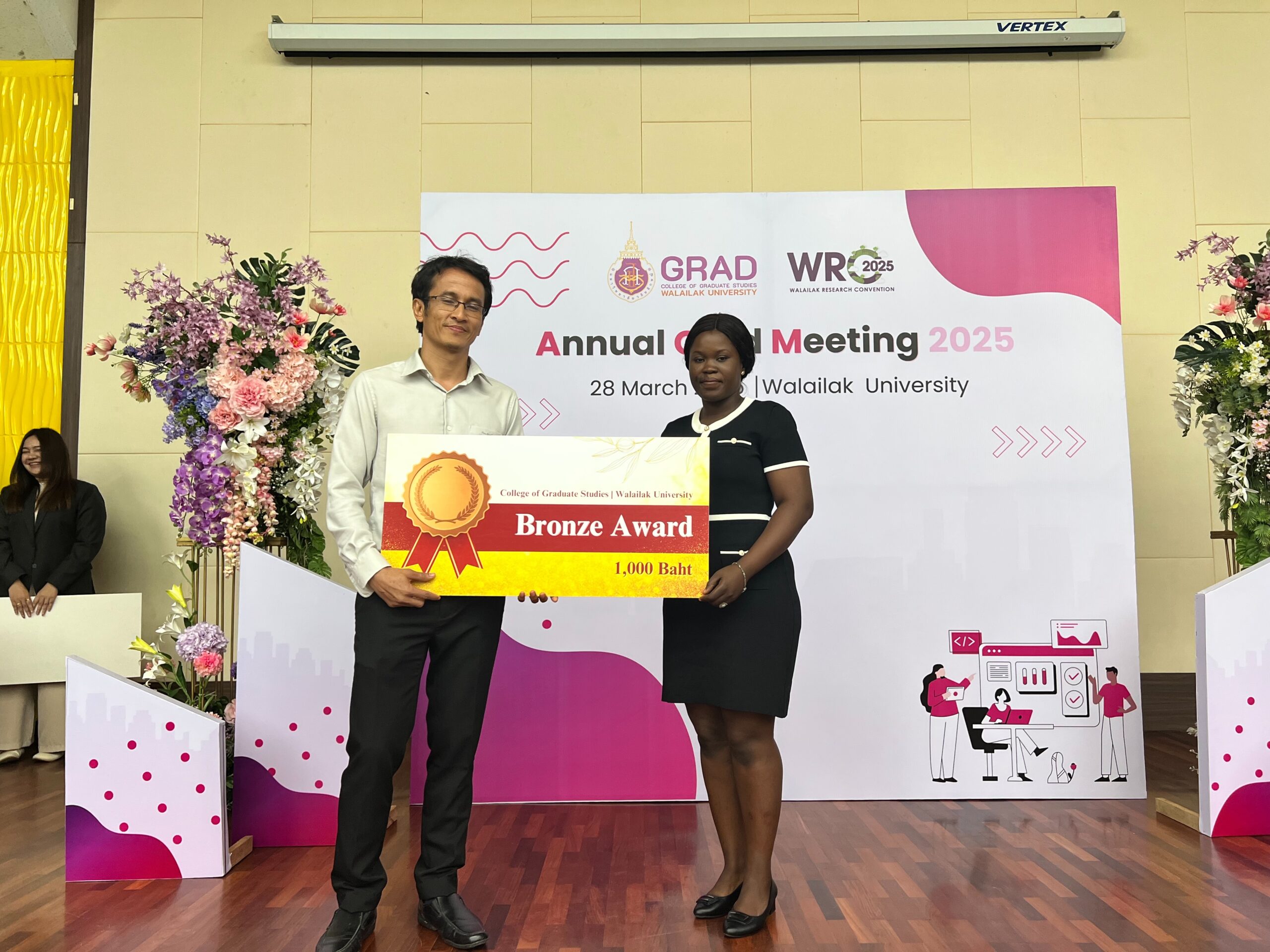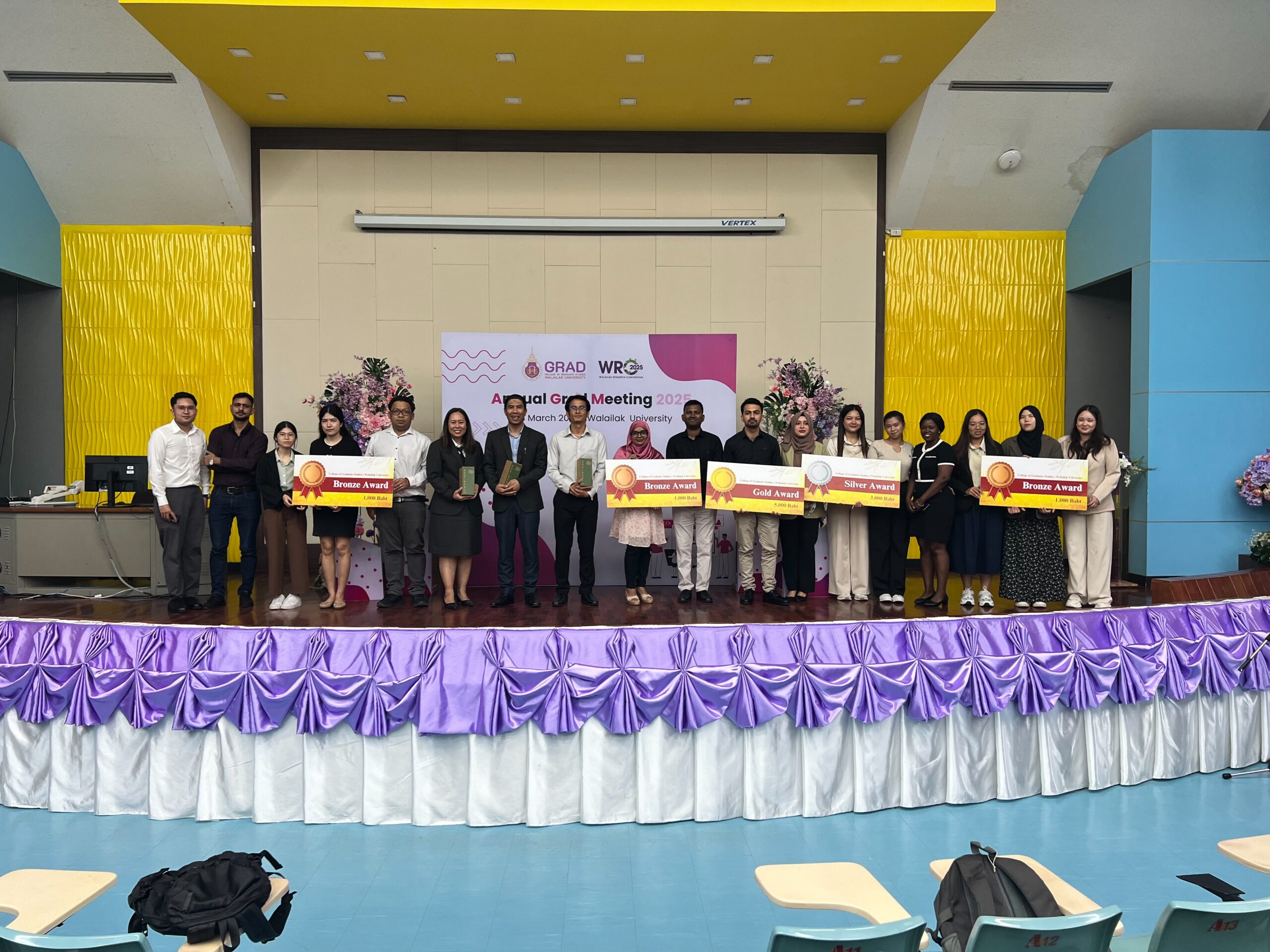 On March 28, 2025, College of Graduate Studies, Walailak University successfully organized the Annual Grad Meeting 2025 (AGM 2025) at Lecture Building 5, Walailak University, Thailand. This meeting provides a platform for graduate students to present their research and creative works. The event was presided over by Assoc. Prof. Dr. Phongpichit Channuie, Dean of the College of Graduate Studies, who emphasized the importance of research in driving societal progress.