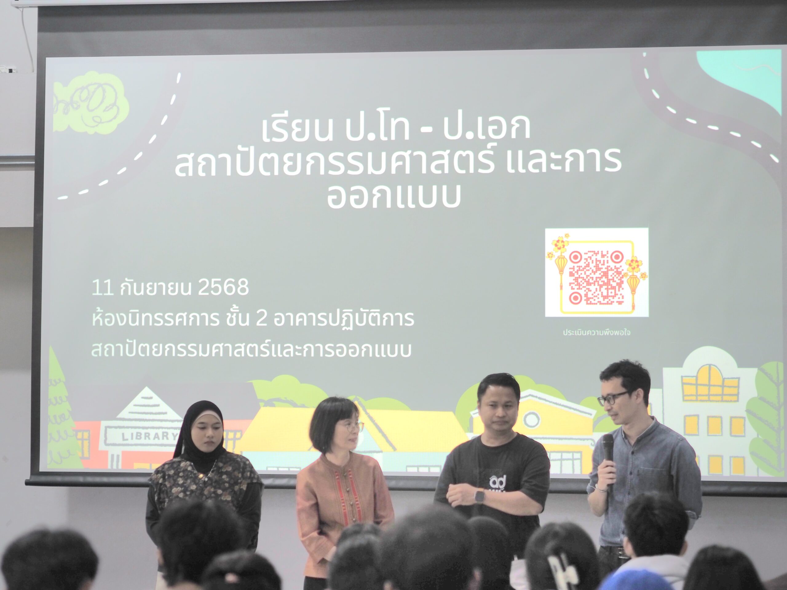Held on 11 September 2025 at the Exhibition Hall, 2nd Floor, Architecture and Design Practice Building, the event featured presentations from distinguished faculty members, including Assoc.Prof.Dr. Wirut Thinnakorn , Assoc.Prof. Jantanee Bejrananda , and Assoc. Prof. Banjongsak Pimthong, along with lecturers from the program. The speakers shared in-depth perspectives on the curriculum’s strengths, academic structure, and the vibrant learning environment that characterizes graduate education at Walailak University.