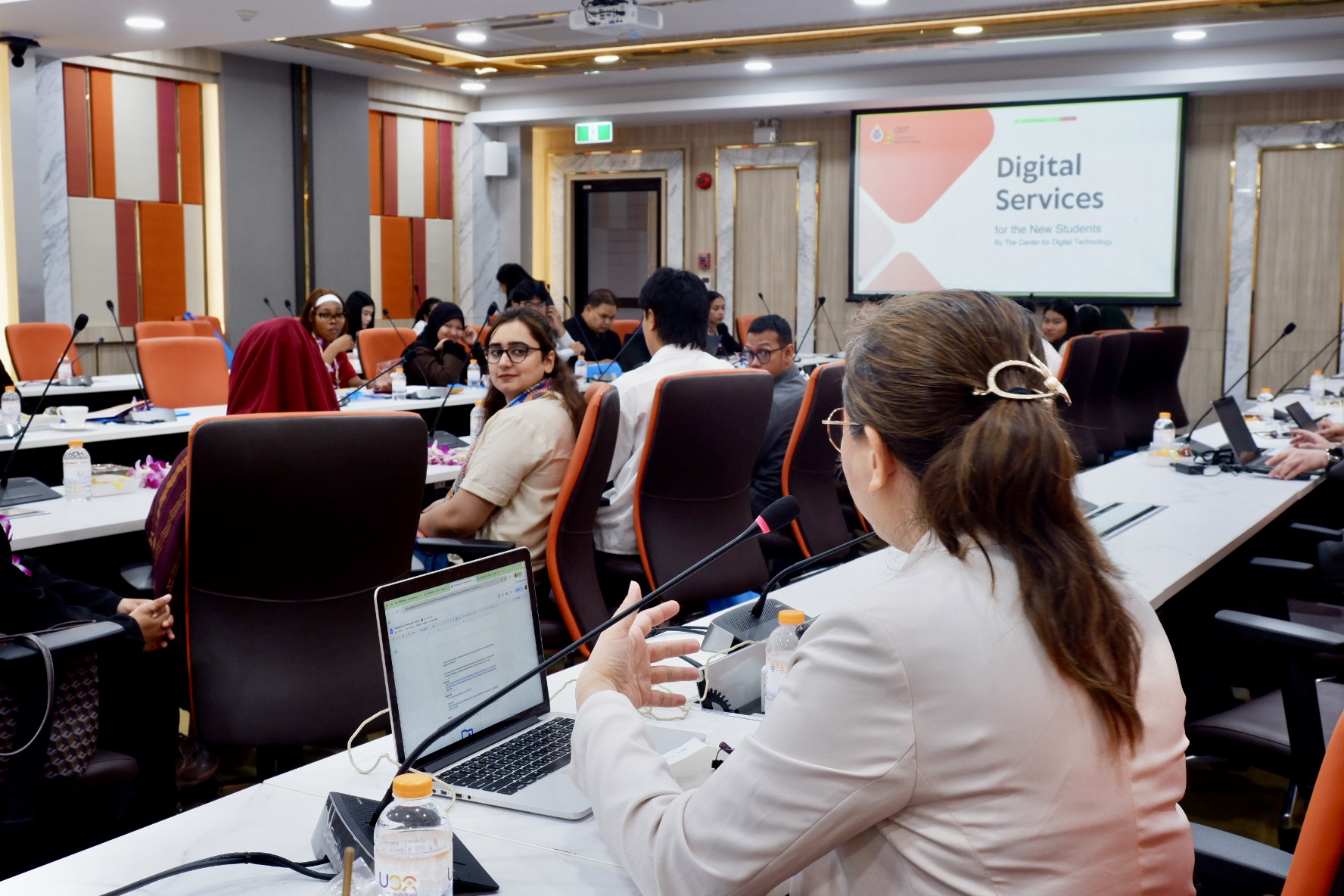 Assoc. Prof. Dr. Phongpichit Channuie, Dean of the College of Graduate Studies, introduced the role of the CGS as the unit supporting students throughout their academic journey. The CGS also informed students of academic guidelines, individual study plans, and essential support services.