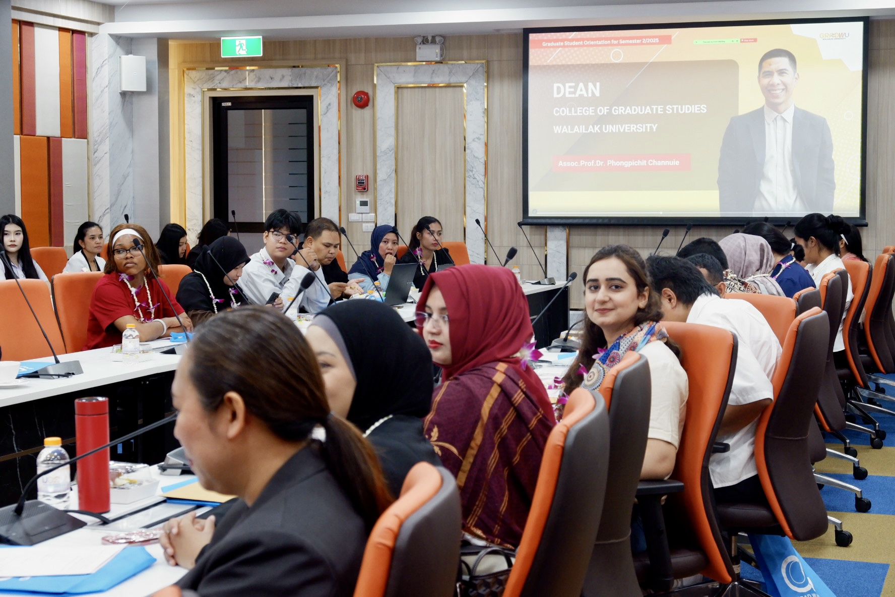 On November 11, 2025, the College of Graduate Studies (CGS), Walailak University held the Graduate Student Orientation for Semester 2/2025 at Mokalan Meeting Room, 3rd Floor, Professor Dr. Wichit Srisa-arn Building.