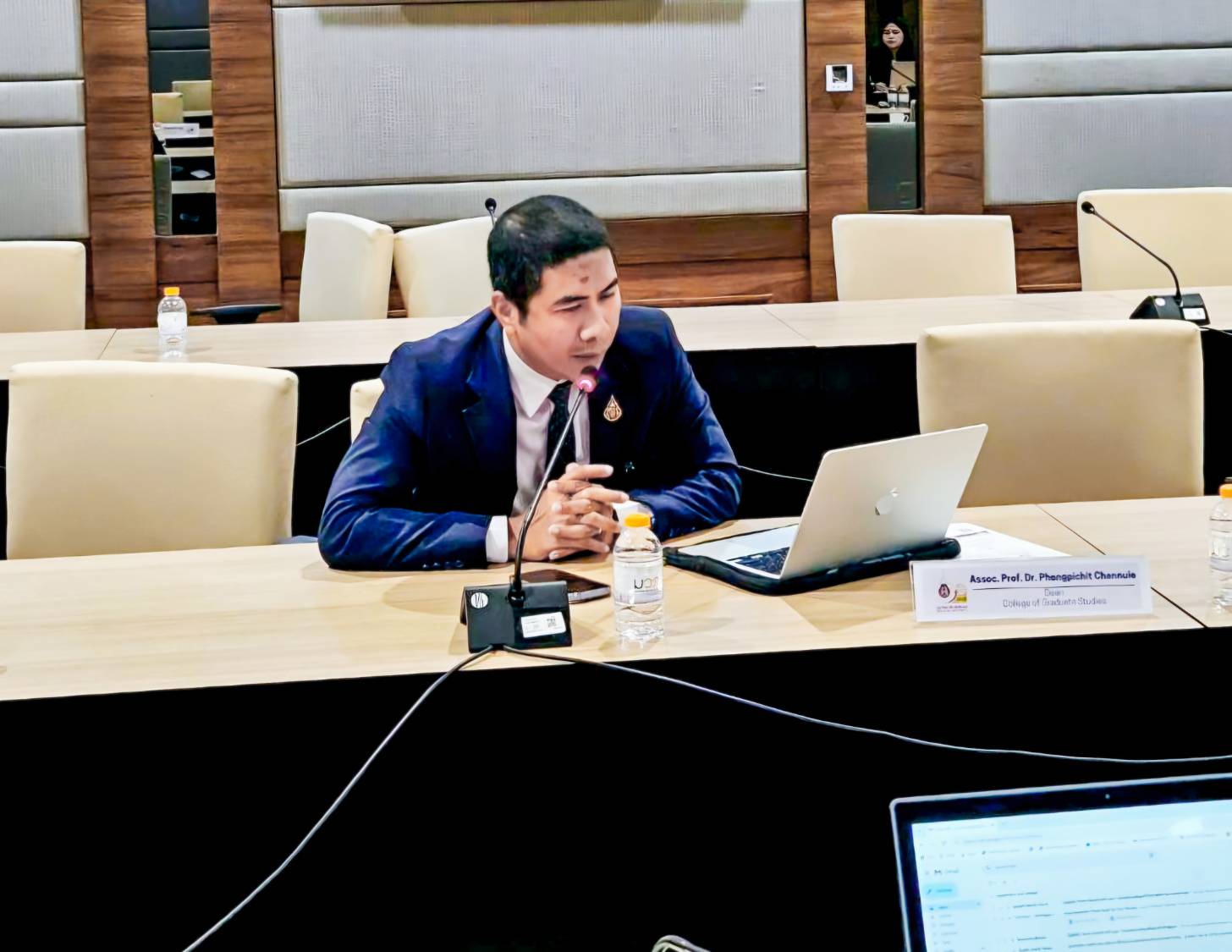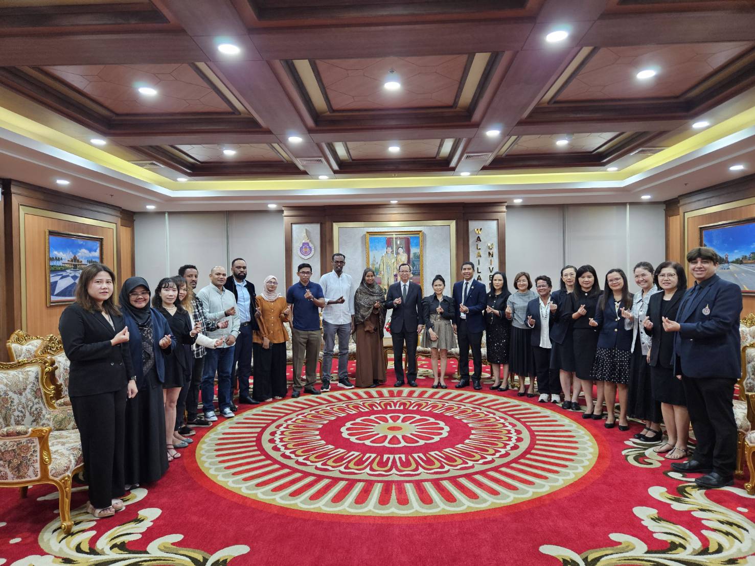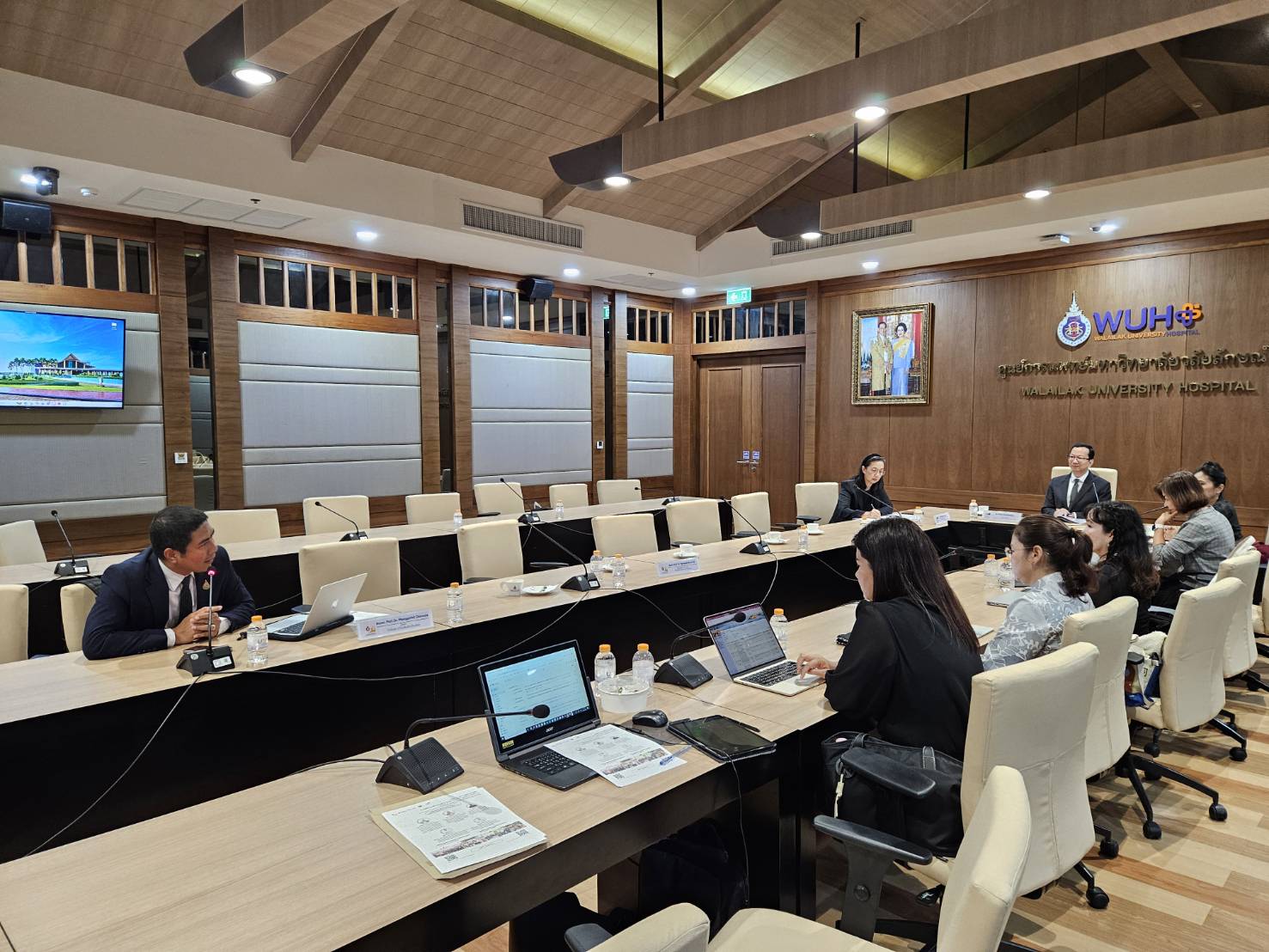 A key executive session took place from 10:30 AM to 12:00 PM at the Chor Pradu Meeting Room, Walailak University Hospital. During this session, Assoc. Prof. Dr. Pongpichit Channuie, Dean of the College of Graduate Studies, joined the university leadership in welcoming the distinguished guests. Assoc. Prof. Dr. Pongpichit delivered a presentation showcasing Walailak University’s graduate programs, highlighting the institution’s research strengths and its readiness to support high-level international scholars.