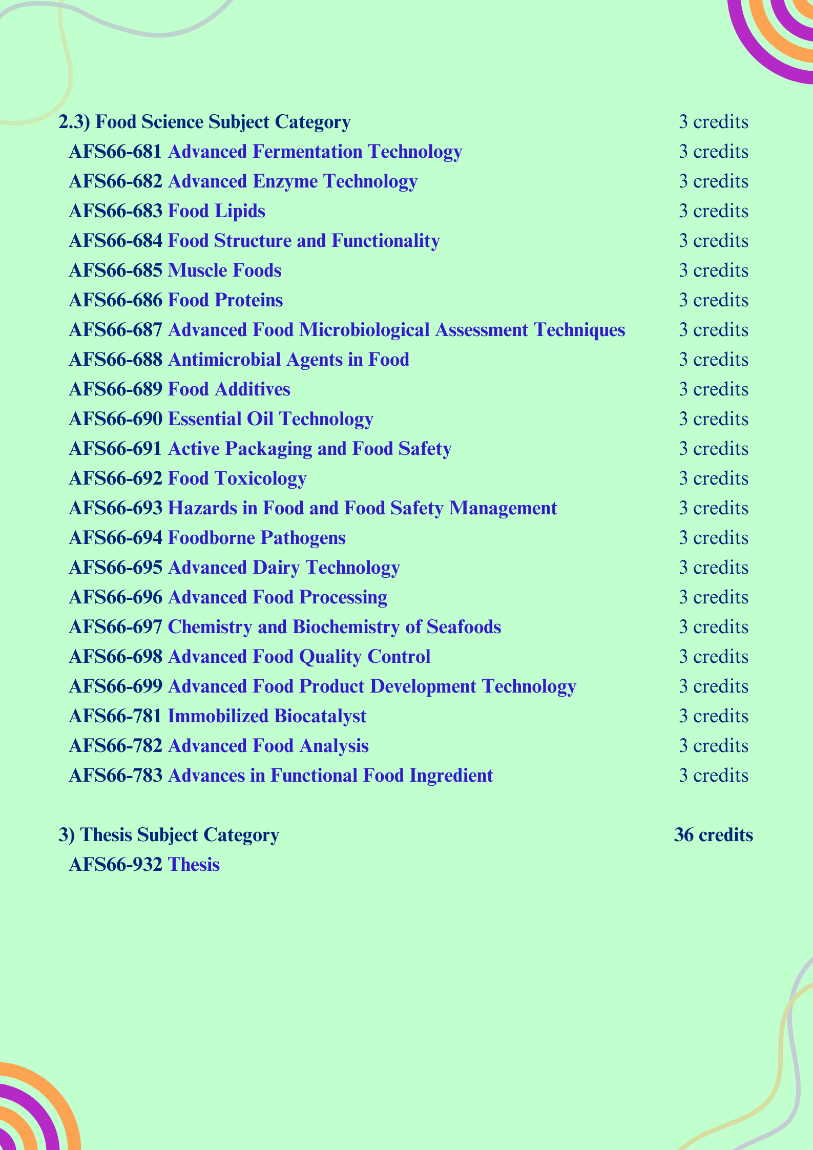 3) Thesis Subject Category | 36 credits |