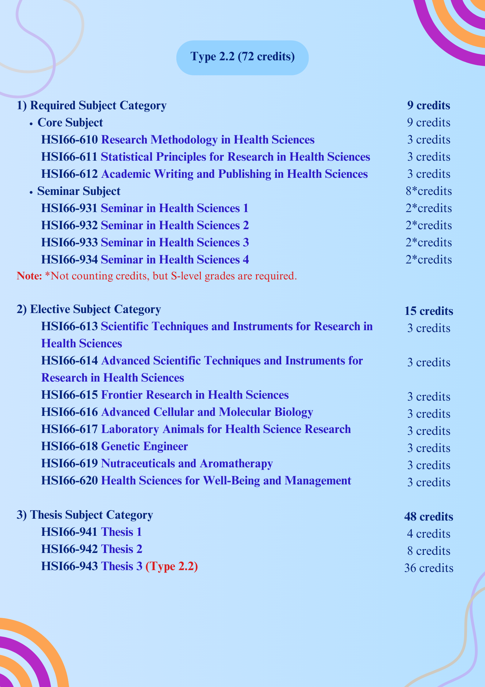 3) Thesis Subject Category | 72 credits |